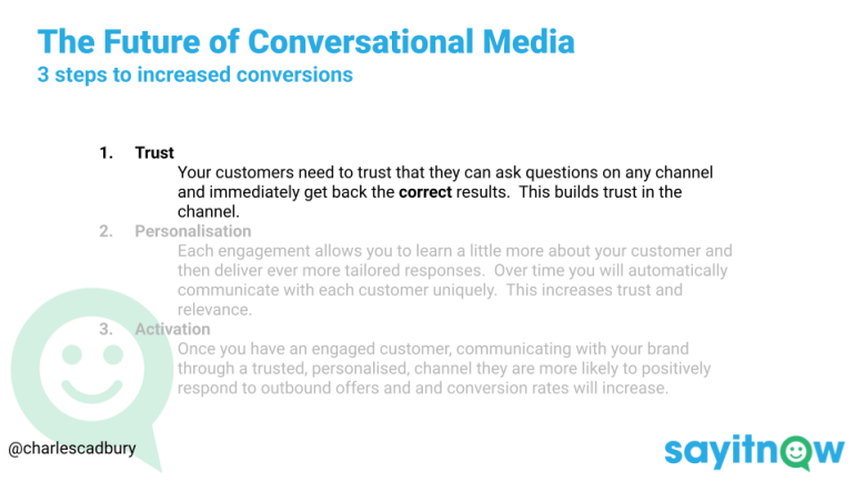 Slide 11-13 – This is the 3 step process brands need to go on to make the most of conversational engagement