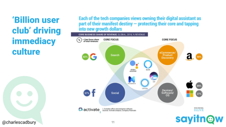 Slide 9 – Big Tech is the driver for consumer adoption. I did think this would have been driven faster but in retrospect the technology to gain human/machine parity for voice only really arrived last year. This arms race is really hotting up with Amazon‘s #Alexa+ launch and Google‘s #gemini front and centre.